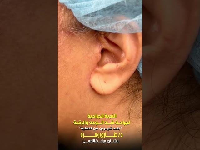 الندبة الجراحية لشد الوجه والرقبة العميق بعد شهرين من العملية